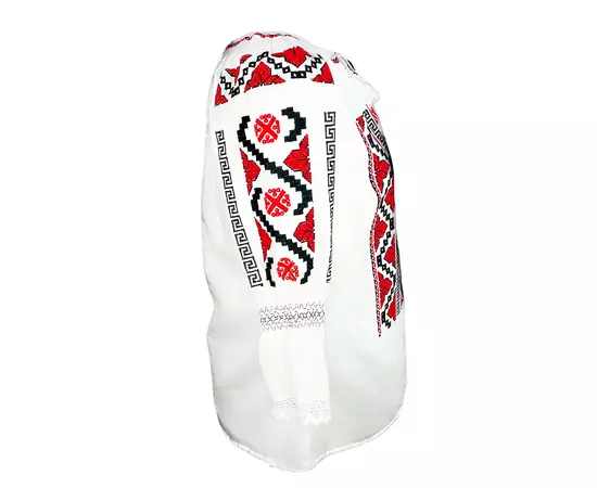 Bluza Tip Ie Traditionala Alba cu Motiv Geometric Rosu de Dama - IMS123