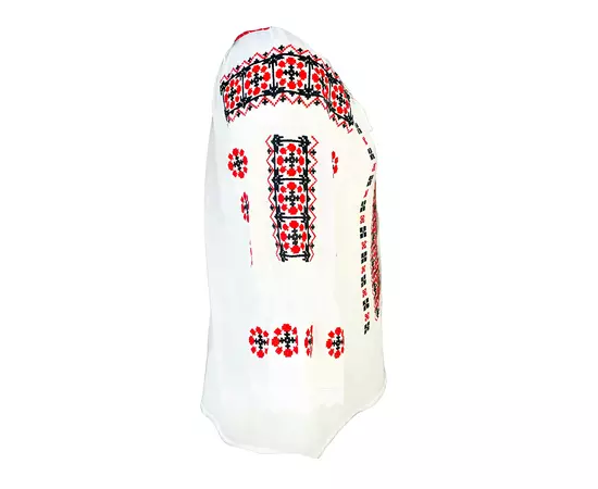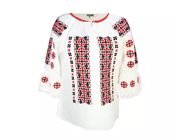 Bluza Tip Ie Traditionala Alba cu Motiv Geometric Rosu de Dama - IMS150