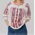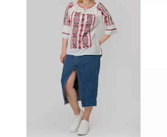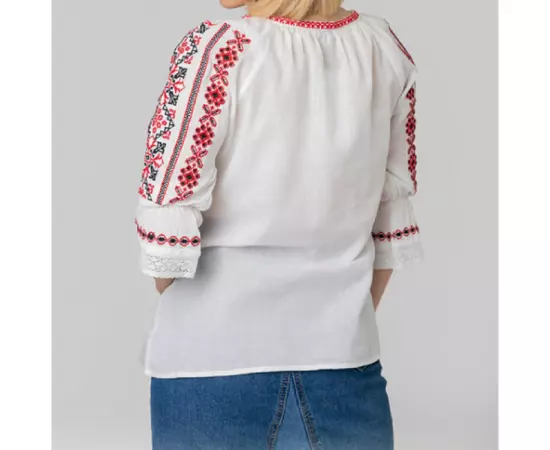 Bluza Tip Ie Traditionala Alba cu Motiv Geometric Rosu de Dama - IMS38