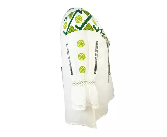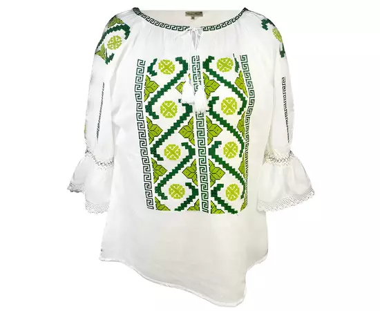 Bluza Tip Ie Traditionala Alba cu Motiv Geometric Verde de Dama - IMS58