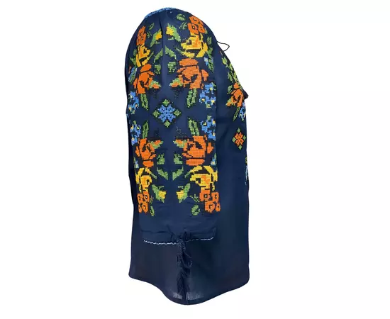Bluza Tip Ie Traditionala Albastra cu Motiv Floral Multicolor de Dama - IMS54