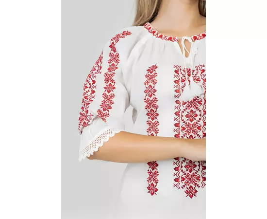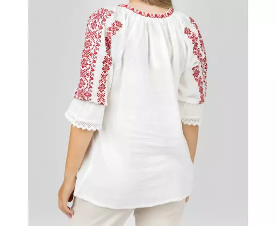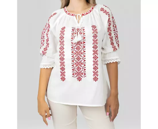 Bluza Tip Ie Traditionala Alba cu Motiv Floral Rosu de Dama- IMS32