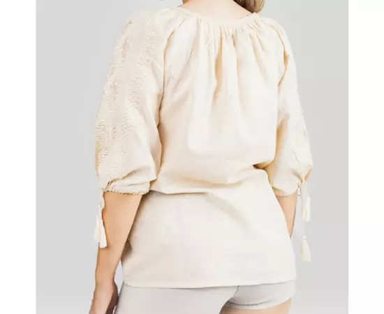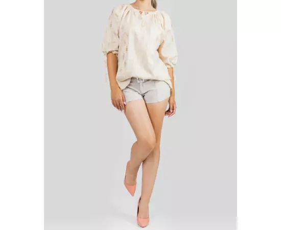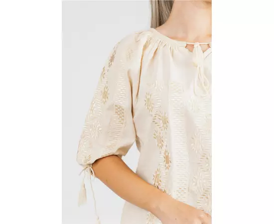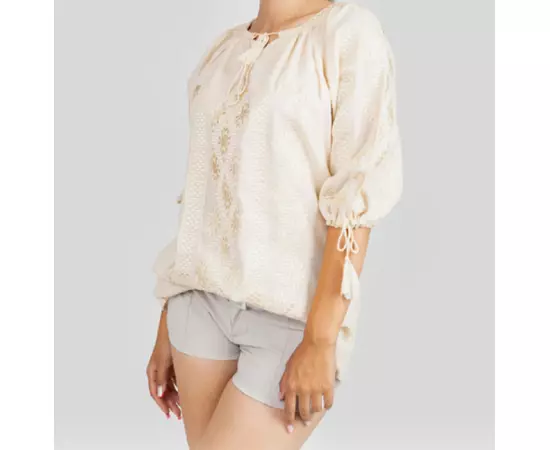 Bluza Tip Ie Traditionala Crem cu Motiv Floral Auriu de Dama - IMS65