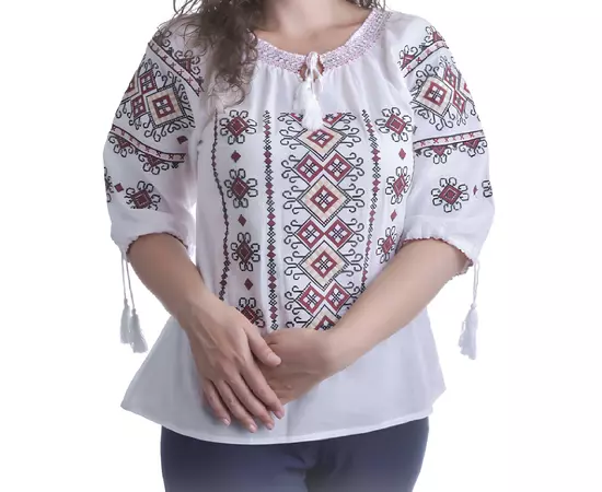 Bluza Tip Ie Traditionala Alba cu Motiv Geometric Multicolor de Dama - IMS34