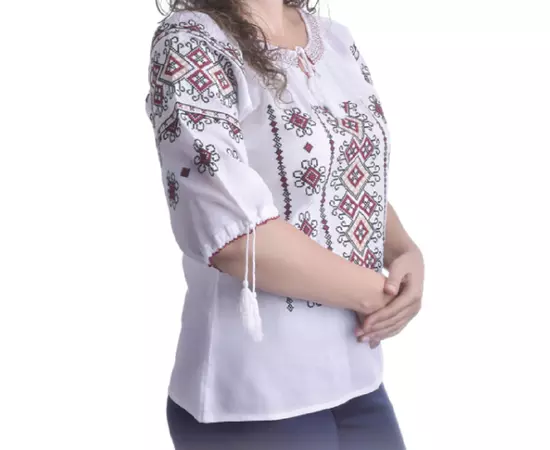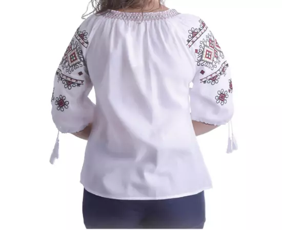 Bluza Tip Ie Traditionala Alba cu Motiv Geometric Multicolor de Dama - IMS34