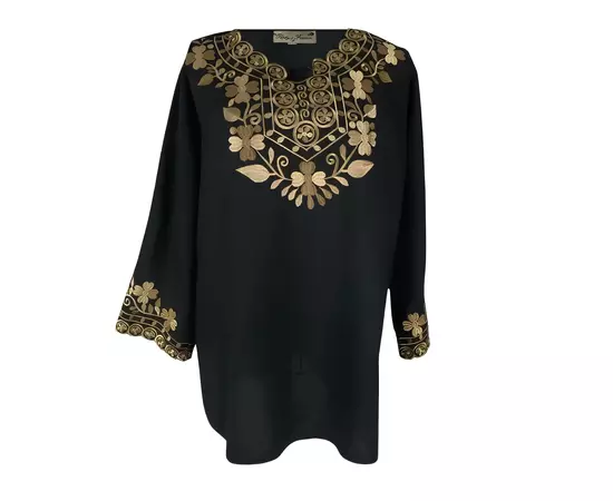 Bluza Tip Ie Traditionala Neagra cu Motiv Floral Auriu de Dama - IMS168