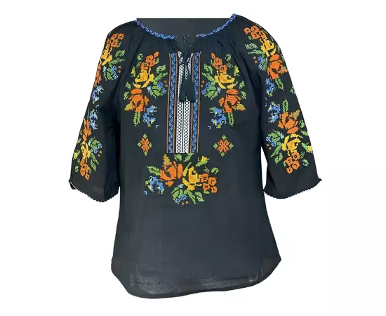 Bluza Tip Ie Traditionala Neagra cu Motiv Floral Multicolor de Dama - IMS109