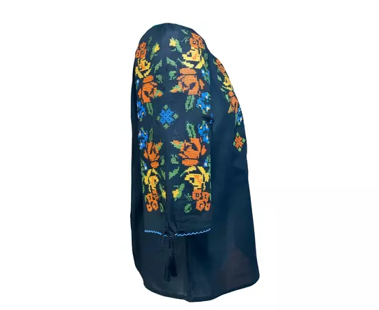 Bluza Tip Ie Traditionala Neagra cu Motiv Floral Multicolor de Dama - IMS109