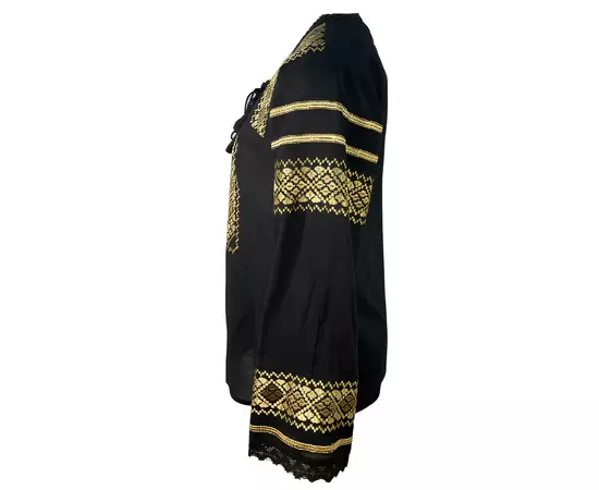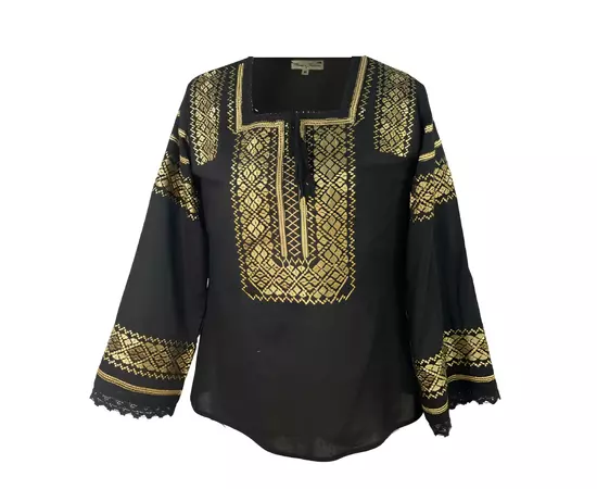Bluza Tip Ie Traditionala Neagra cu Motiv Geometric Auriu de Dama - IML31