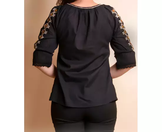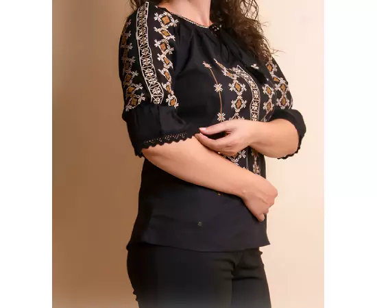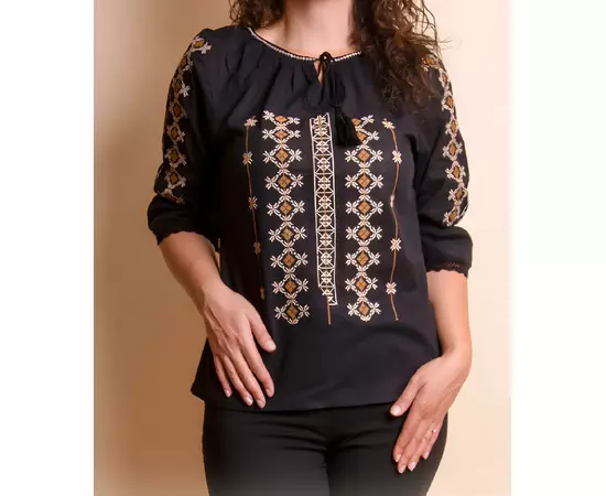 Bluza Tip Ie Traditionala Neagra cu Motiv Geometric Crem de Dama - IMS55
