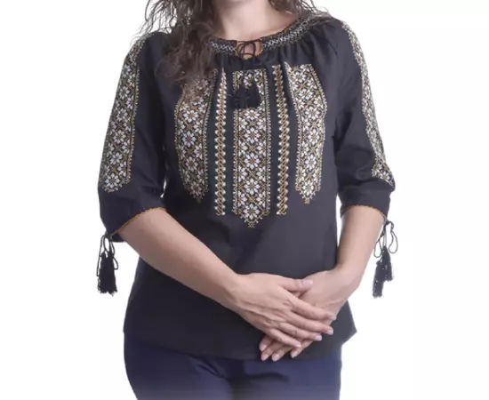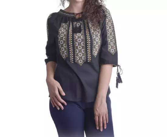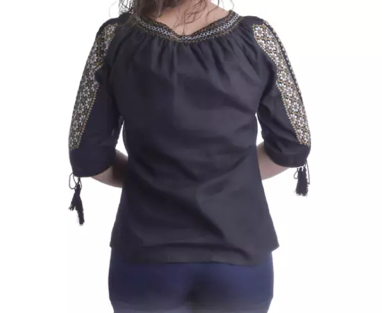 Bluza Tip Ie Traditionala Neagra cu Motiv Geometric Multicolor de Dama - IMS105