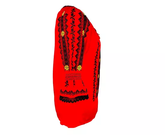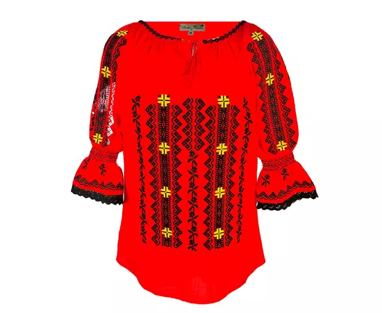 Bluza Tip Ie Traditionala Rosie cu Motiv Geometric Negru de Dama - IMS145