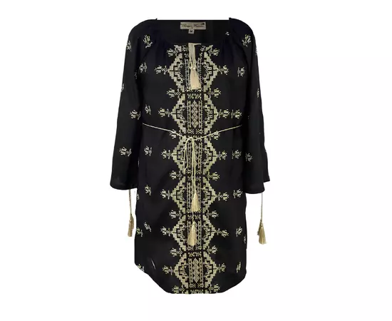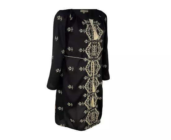 Bluza Tip Tunica Neagra cu Motiv Geometric Auriu- BMG06