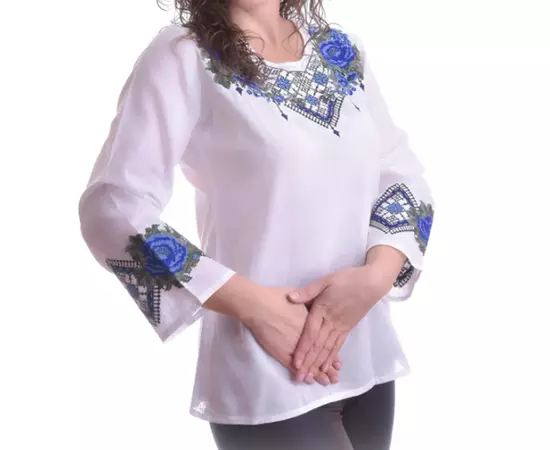 Bluza Traditionala Alba cu Motiv Floral Albastru - BMG110