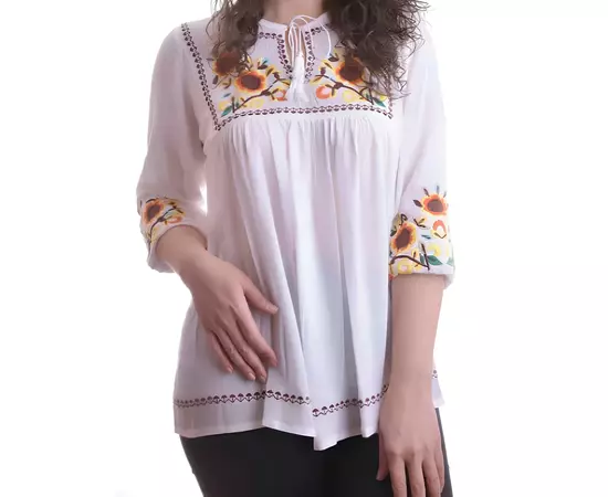 Bluza Traditionala Alba cu Motiv Floral Multicolor - BMG112