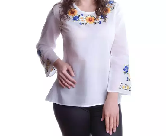 Bluza Traditionala Alba cu Motiv Floral Multicolor - BMG114