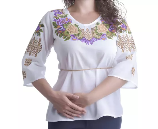 Bluza Traditionala Alba cu Motiv Floral Multicolor - BMG166