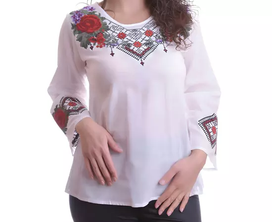 Bluza Traditionala Alba cu Motiv Floral Rosu - BMG111