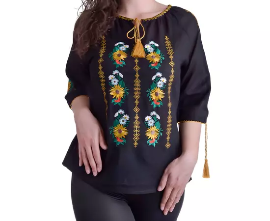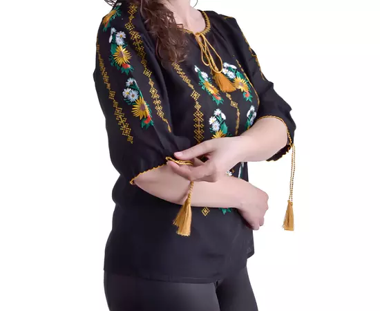 Bluza Traditionala Neagra cu Motiv Gloral Galben - BMG119