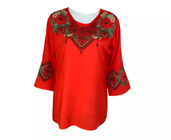 Bluza Traditionala Rosie cu Motiv Floral Rosu - BMG98