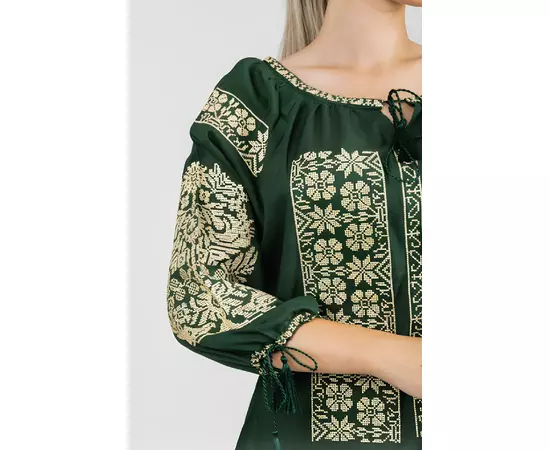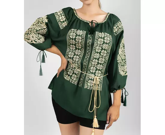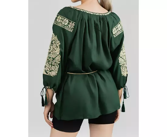 Bluza verde cu motiv floral auriu - BMG143