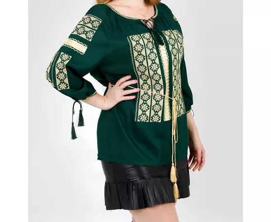 Bluza Verde cu Motiv Floral Auriu - BMG182