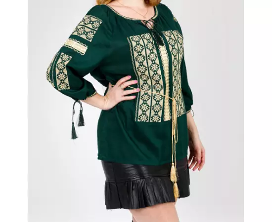 Bluza Verde cu Motiv Floral Auriu - BMG182