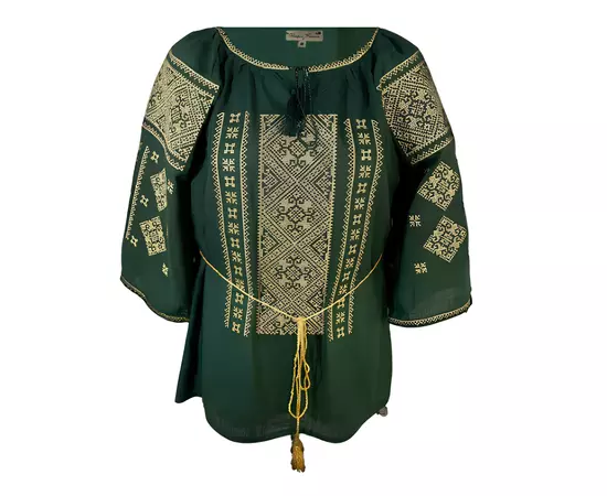 Bluza tip ie verde din viscoza cu maneca 3/4 si motiv auriu
