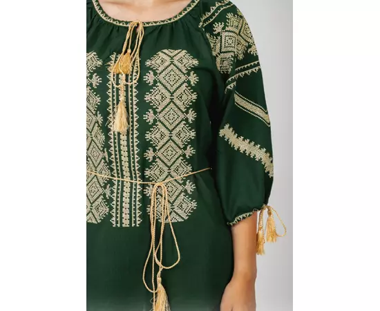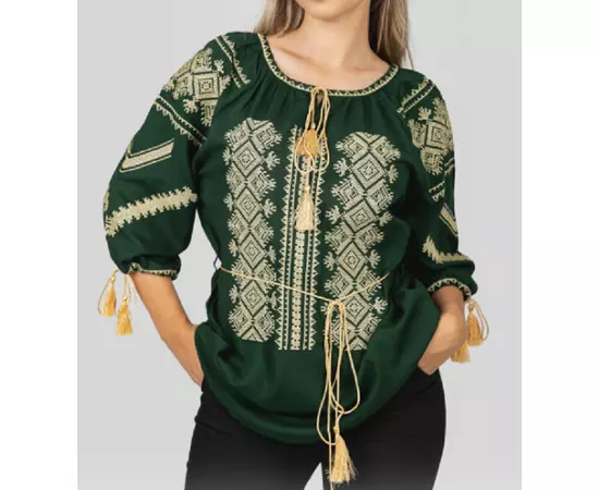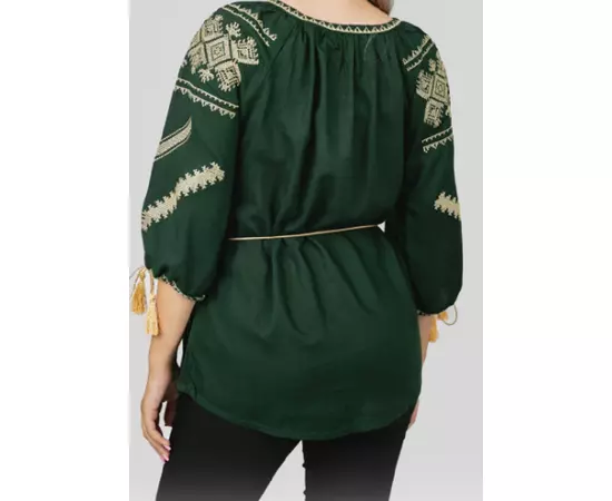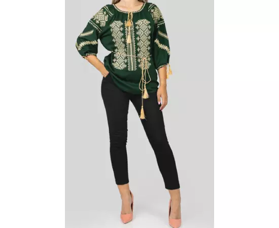 Bluza tip ie verde din viscoza cu maneca 3/4 si motiv auriu