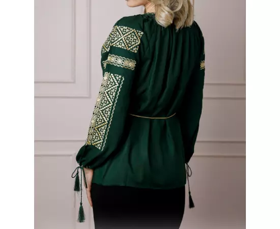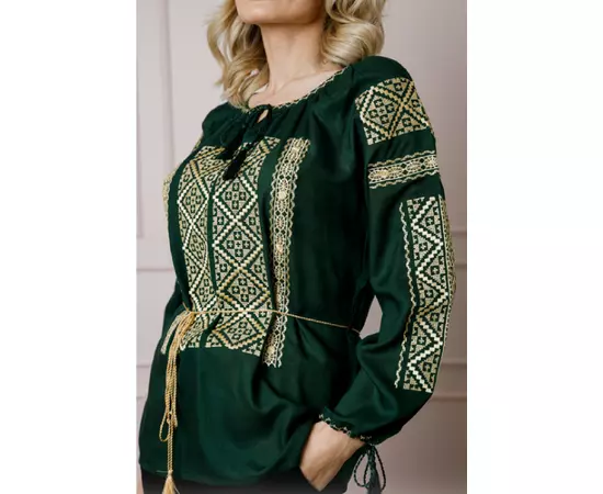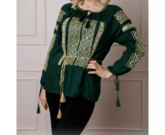 Bluza Verde cu Motiv Geometric Auriu - BMG174