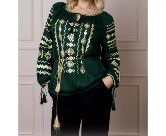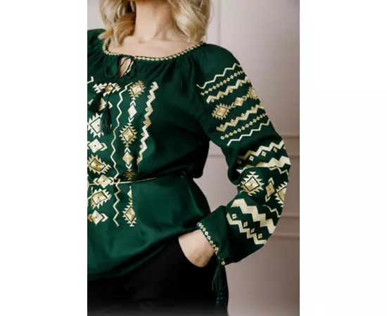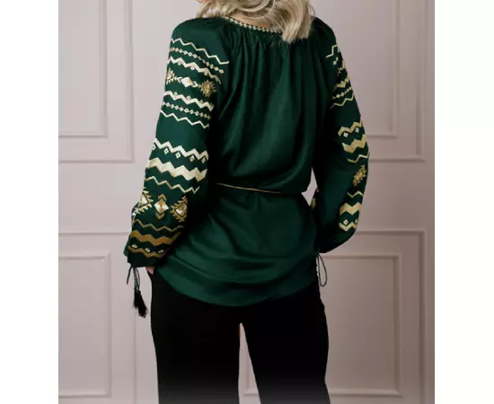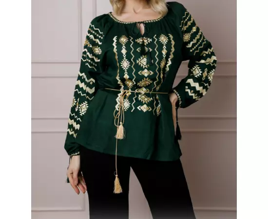Bluza Verde cu Motiv Geometric Auriu - BMG175