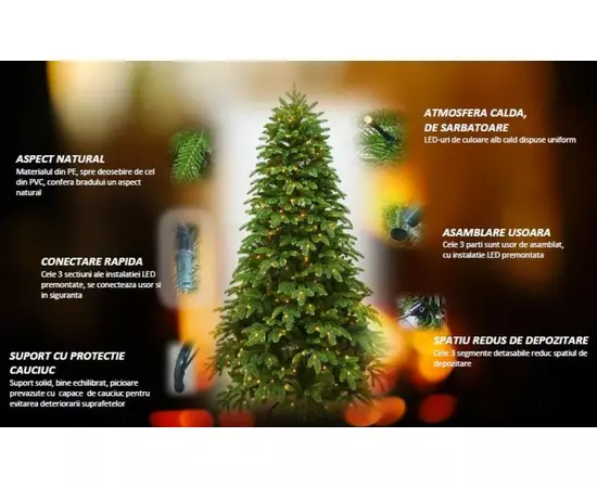 - aspect natural: materialul din PE, spre deosebire de cel din PVC, confera bradului un aspect natural;