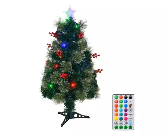 Brad Artificial Fibra Optica de Craciun, 12 LED-uri RGB, cu Telecomanda, 90 cm - INV1082706