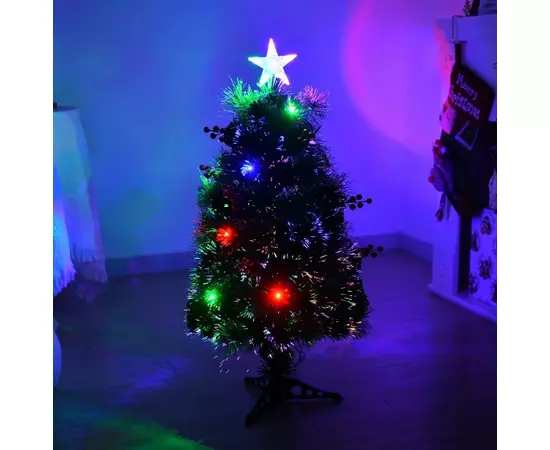 Bradul artificial de Craciun din fibra optica Hoff, cu o inaltime de 90 cm, aduce un plus de magie oricarui decor de sarbatori. Echipat cu 12 LED-uri RGB si fibra optica sincronizata, acest brad creeaza un spectacol de lumini ce transforma orice spatiu intr-un loc plin de spirit festiv.