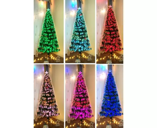 Brad Artificial Fibra Optica de Craciun, 265 LED-uri RGB, Flash , 210 cm - INV1057690