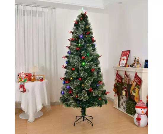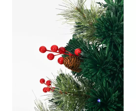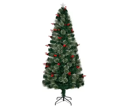 Frunzele acestui brad sunt realizate din PVC si ace artificiale, care ii ofera un aspect natural. Accesorizat cu fructe rosii si conuri de pin, bradul devine mai vibrant si mai apropiat de natura, aducand o nota de prospetime decorului tau de sarbatori. Detaliile realiste ale ramurilor creeaza o atmosfera primitoare si placuta, perfecta pentru orice incapere.