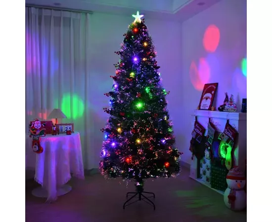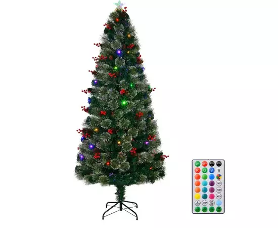 Bradul artificial de Craciun din fibra optica Hoff, cu o inaltime de 210 cm, aduce un plus de magie oricarui decor de sarbatori. Echipat cu 32 LED-uri RGB si fibra optica sincronizata, acest brad creeaza un spectacol de lumini ce transforma orice spatiu intr-un loc plin de spirit festiv.