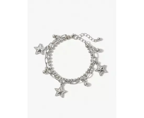 Brățara argintie cu steluțe este o bijuterie delicată și fermecătoare, ce adaugă o notă de eleganță și subtilitate oricărei ținute. Această brățară este definită de un design simplu, dar fermecător, în care steluțele argintii sunt elementul central.