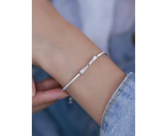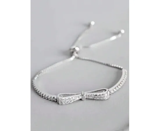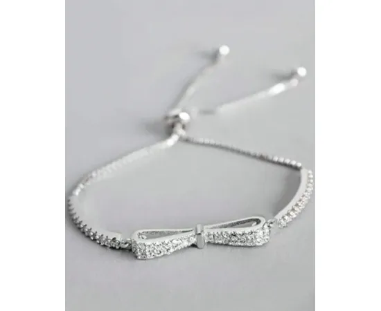 Completează-ți ținuta cu această brățară la modă de lux, realizată din cupru placat cu culoare argintie, decorată cu un design delicat de fundă și strălucitoare strasuri cubic zirconia. Un accesoriu feminin și rafinat, perfect pentru purtare zilnică sau ocazii speciale.
