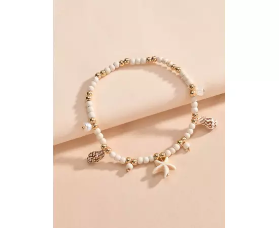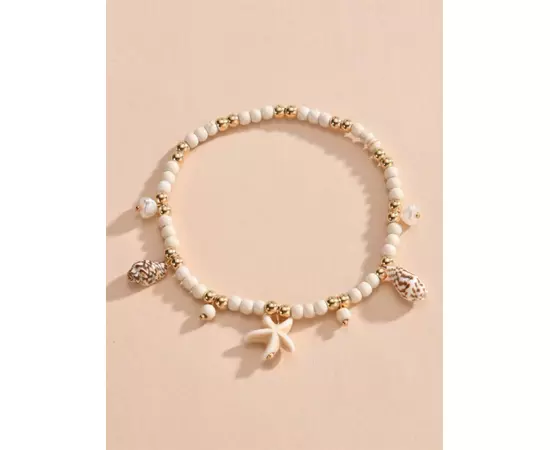 Bratara De Picior cu Stea de Mare si Scoica, Alb si Auriu - 86804