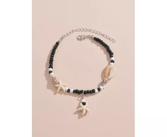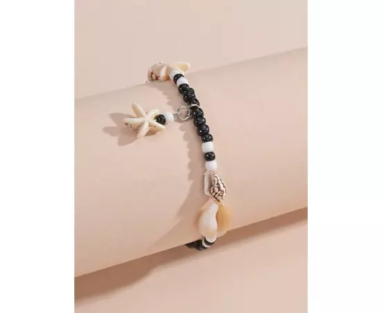 Bratara De Picior cu Stea de Mare si Scoica, Alb si Negru - 51101