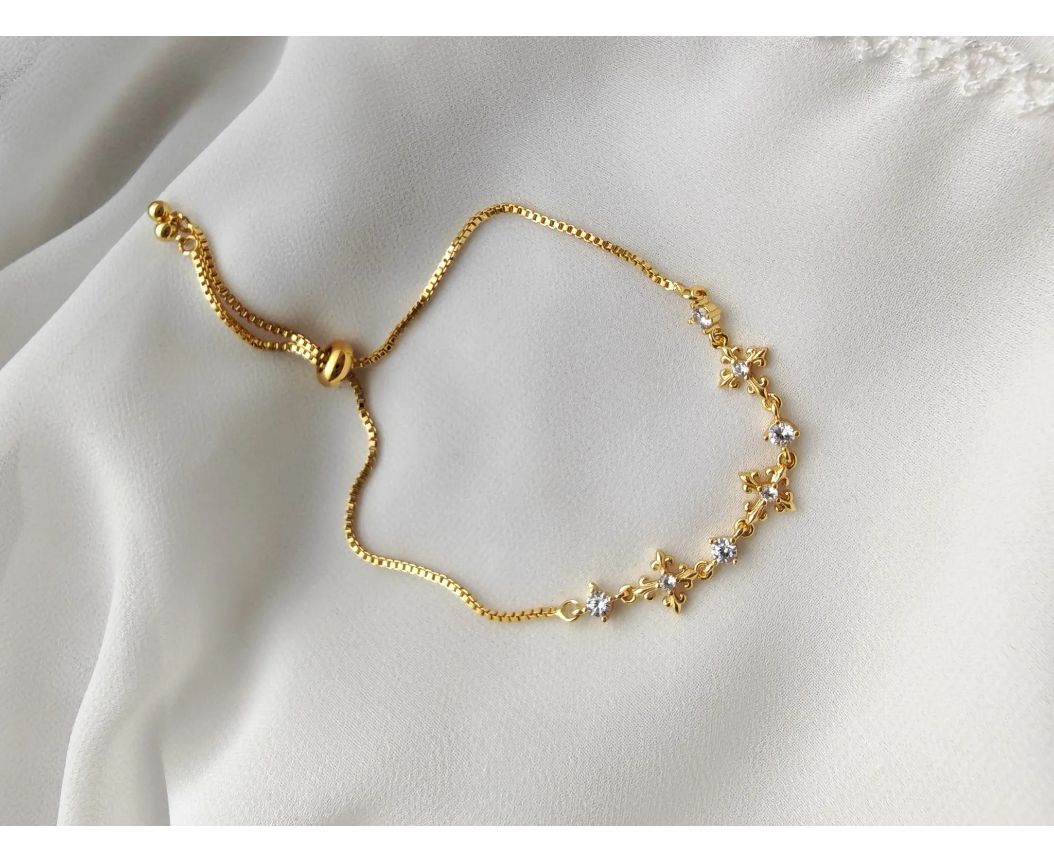 Realizată din cupru de înaltă calitate și finisată cu un strat delicat de aur, această brățară îmbină durabilitatea cu strălucirea luxoasă. Designul său versatil o face potrivită atât pentru ținute de zi, cât și pentru ocazii speciale, oferind o notă subtilă de eleganță fiecărui outfit.