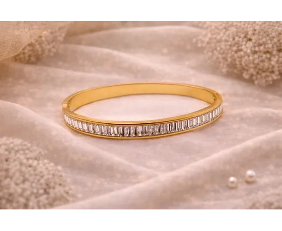 Realizată din cupru de înaltă calitate și finisată cu un strat delicat de aur, această brățară îmbină durabilitatea cu strălucirea luxoasă. Designul său versatil o face potrivită atât pentru ținute de zi, cât și pentru ocazii speciale, oferind o notă subtilă de eleganță fiecărui outfit.
