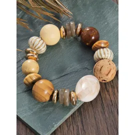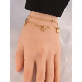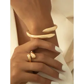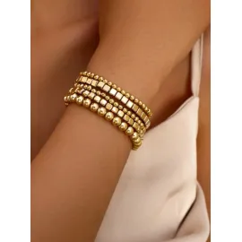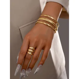 Brățările elegante aurii în set de 5 piese sunt accesorii versatile, potrivite pentru a completa o varietate de ținute, de la cele casual la cele mai formale. Ele adaugă o notă de strălucire și lux oricărei apariții și sunt o expresie subtilă a bunului gust și a rafinamentului.