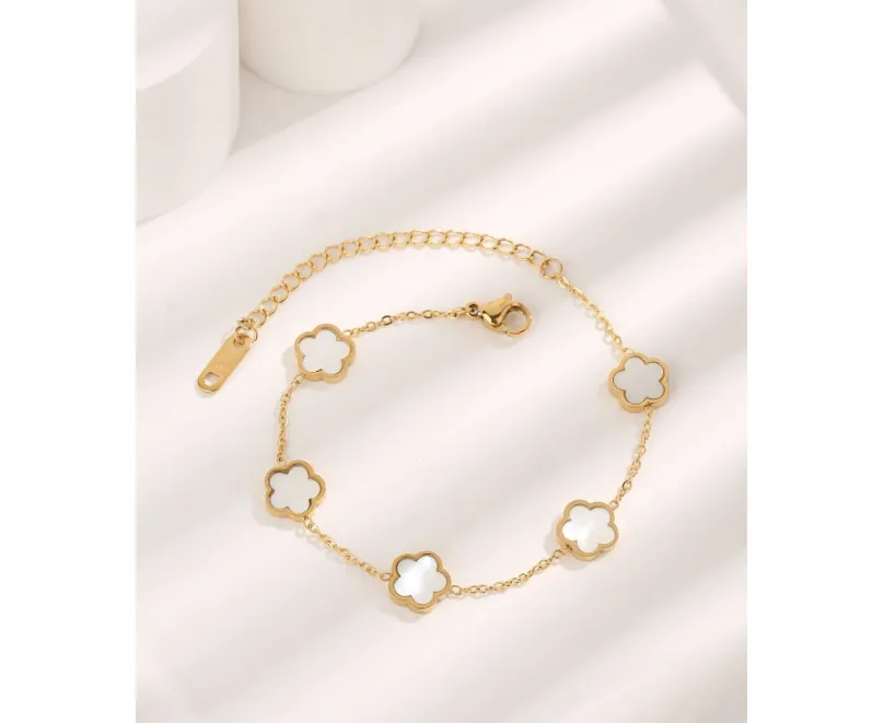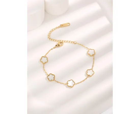 Bratara Eleganta Aurie cu Flori Albe, Otel Inoxidabil - 233722