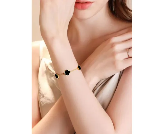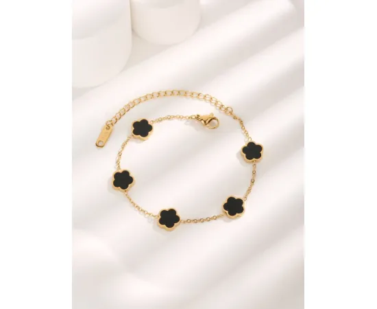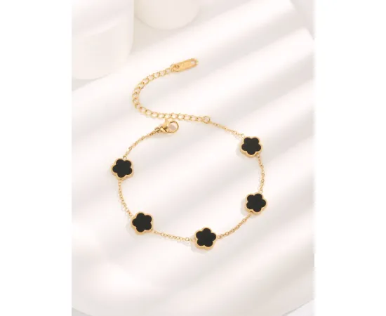 Bratara Eleganta Aurie cu Flori Negre, Otel Inoxidabil - 398240