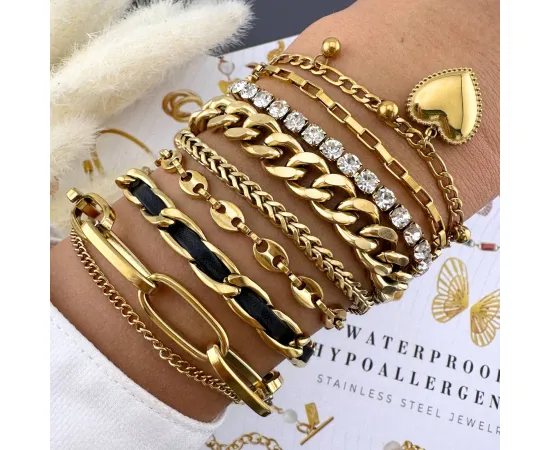 Confecționată din oțel inoxidabil de calitate superioară, brățara este rezistentă la apă, hipoalergenică și are o placare durabilă care nu se oxidează. Lungimea ajustabilă și greutatea redusă o fac confortabilă și ușor de purtat.