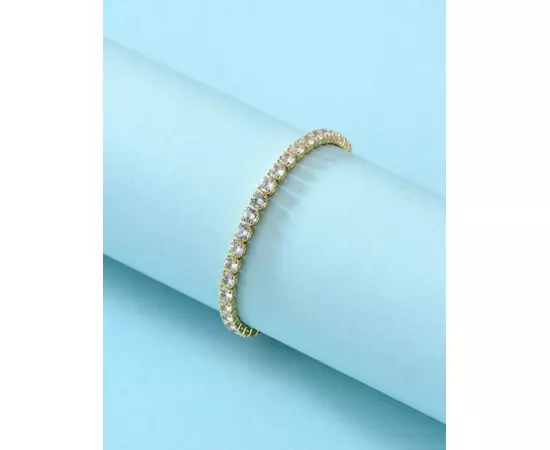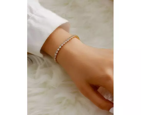 O brățară de tip tenis este un tip de bijuterie foarte populară, constând dintr-un rând de diamante sau alte pietre prețioase montate pe un lanț subțire și flexibil, care permite brățării să se așeze confortabil pe încheietura mâinii. Este cunoscută pentru eleganța sa simplă și rafinată, fiind un accesoriu versatil potrivit atât pentru ocazii speciale, cât și pentru purtarea de zi cu zi.