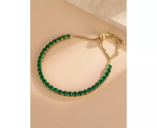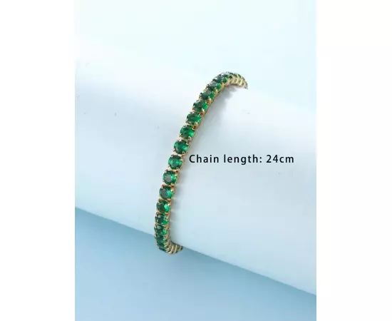 Bratara Tenis Aurie cu Strasuri Verzi - 06990