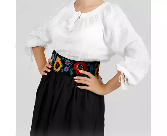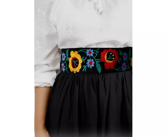 Brau Traditional Negru cu Motiv Floral Multicolor- BTR02